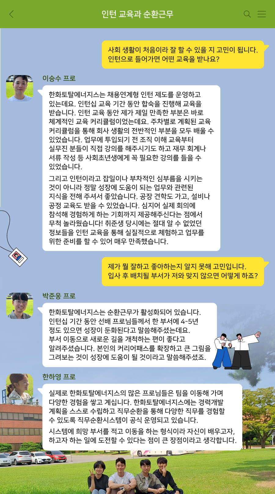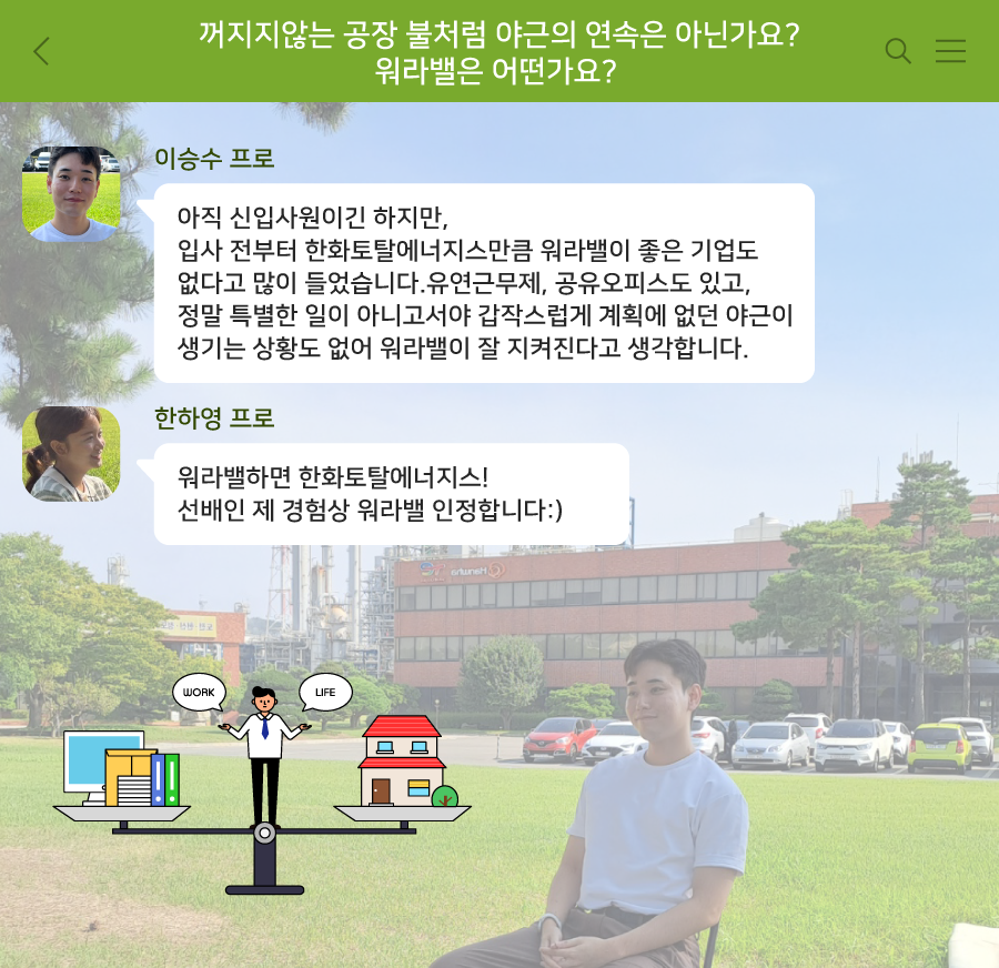 한하영 프로 : 워라밸하면 한화토탈에너지스! 선배인 제 경험상 워라밸 인정합니다:)