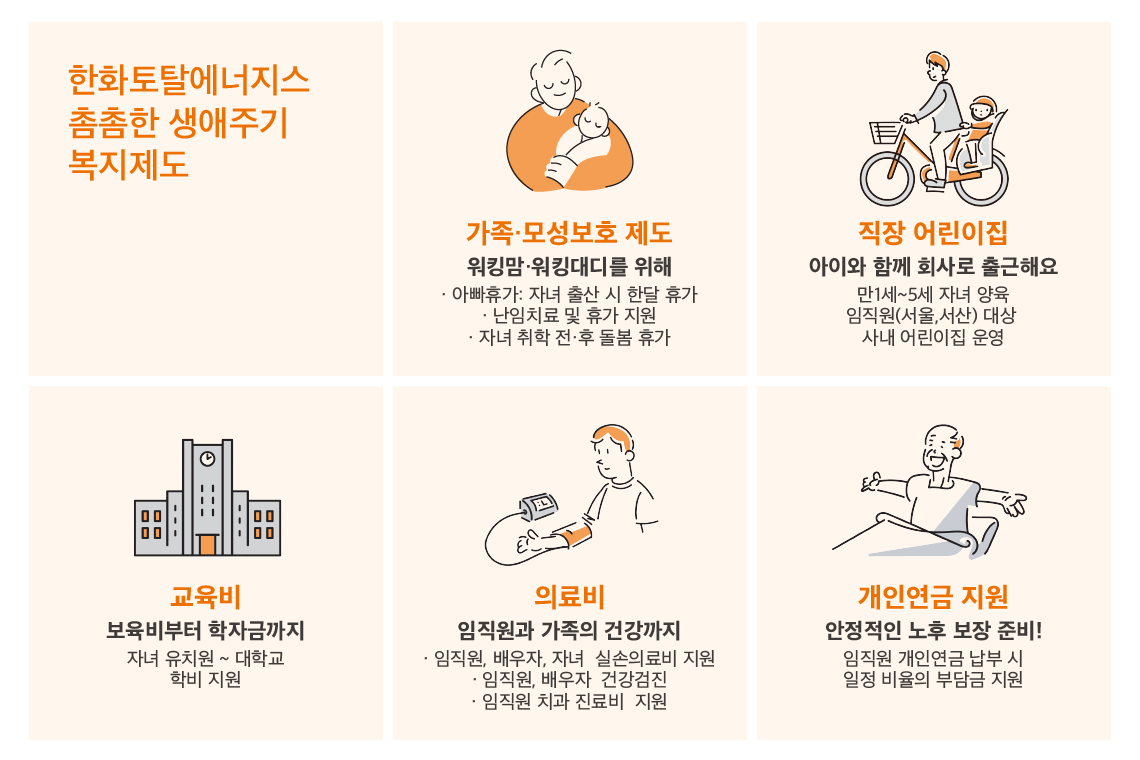 생애주기마다 한화토탈에너지스의 복지가 임직원의 소중한 땀방울에 보답하기 위해 함께 하고 있으니까요,