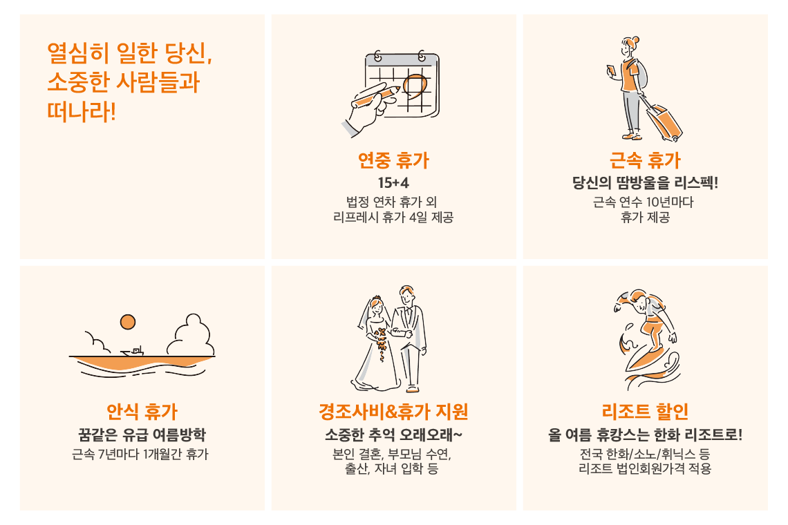 한화토탈에너지스에 입사하면 체감할 수 있는 더 많은 복지들이 기다리고 있답니다.